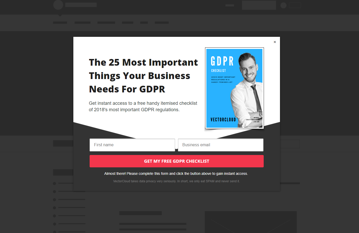 What was VectorCloud's GDPR Compliance Checklist landing page conversion rate?